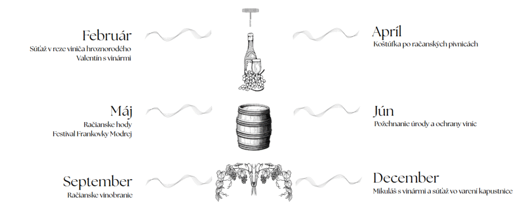niekoľko akcií ako sú Koštúfka po račanských pivnicách, Festival Frankovky Modrej, Valentín s vinármi a ďalšie.