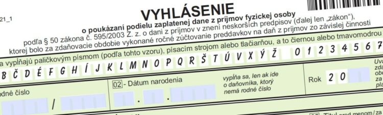 ÚDAJE, KTORÉ POTREBUJETE DO DAŇOVÉHO PRIZNANIA UVIESŤ SÚ: